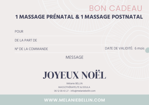 Bon cadeau – 1 massage prénatal + 1 massage postnatal