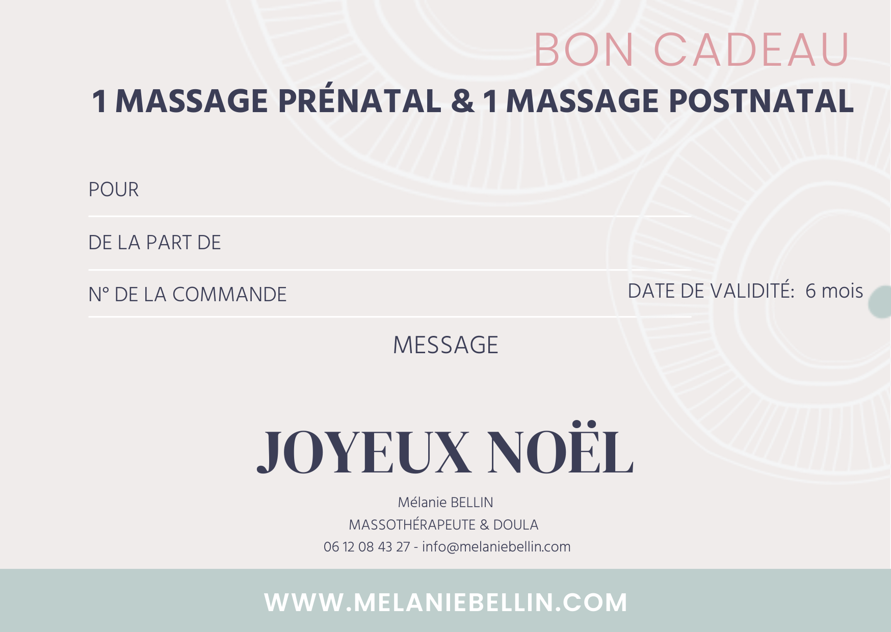 Offrez un bon cadeau pour 1 massage prénatal + 1 massage postnatal .